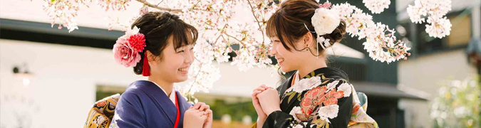 多くのお客様にご利用いただいております。小紋や振袖、袴、男性着物、お子さまプランまで多彩な種類をご用意。着付け・ヘアセットがセットになったプランで手ぶらでご来店いただけます。観光・散策はもちろん、卒業式や成人式などのフォーマルシーンにも幅広くご利用いただける、便利でおしゃれな着物体験をお届けします。